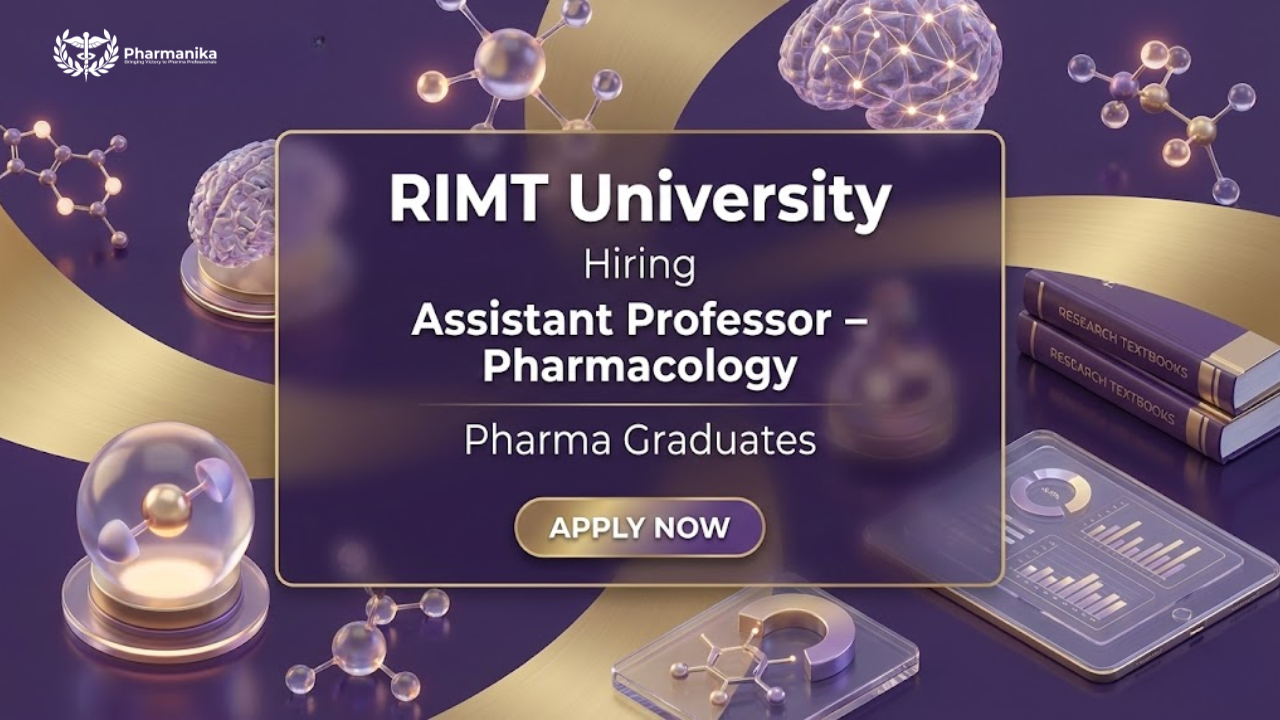 RIMT University is offering excellent Assistant Professor Jobs for qualified professionals seeking academic careers in Pharmacology Jobs at its Punjab campus. This faculty opportunity is ideal for candidates passionate about teaching, research, and mentoring students in pharmacology while contributing to institutional and academic growth at a reputed university.
