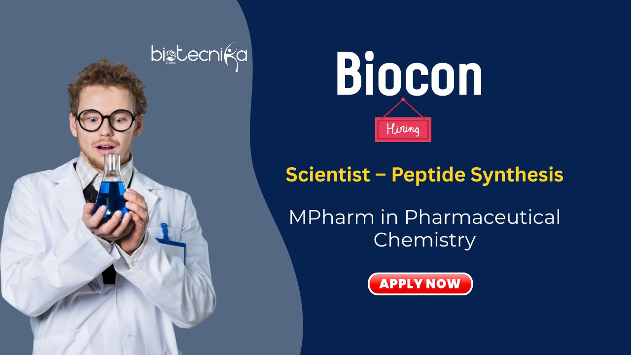 Keywords: Biocon careers, Peptide Synthesis Scientist jobs, API R&D Bangalore, Peptide API development, Biocon scientist jobs,