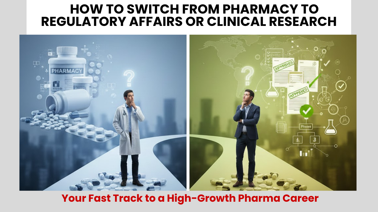 This guide will help you walk through everything you need to know to switch from pharmacy to regulatory affairs or clinical research. It covers the basic understanding of career landscapes, skill building, gaining relevant experience, and securing your freshers’ job roles. This guide will help you transform your pharmacy background into a rewarding career in higher-growth domains.