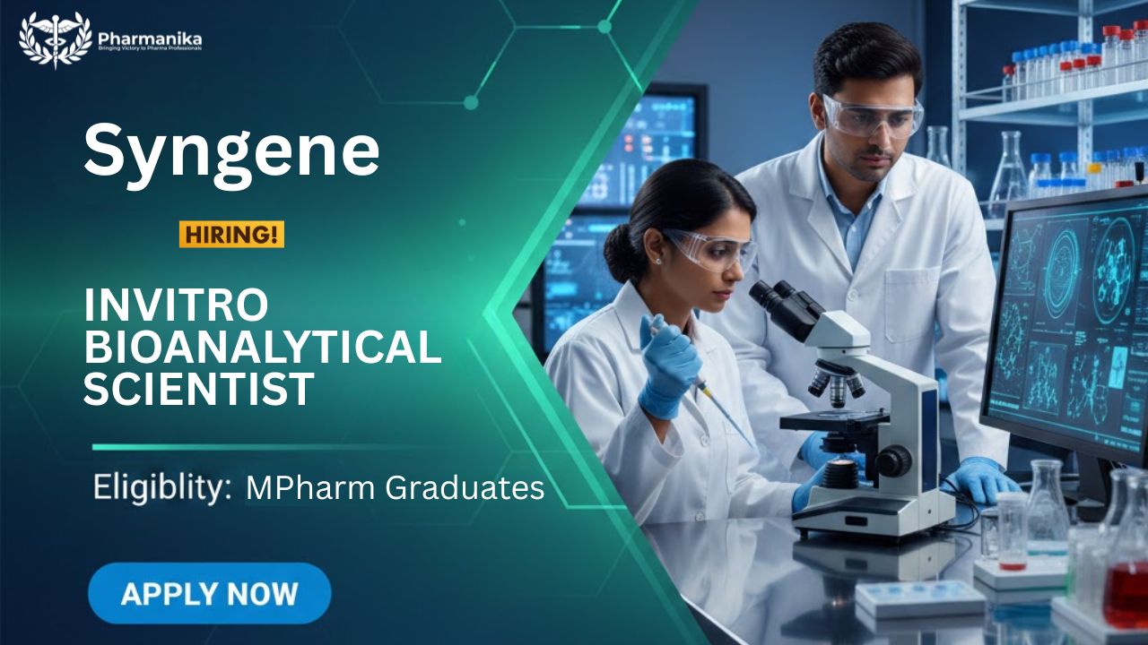 Invitro Bioanalytical Scientist Job at Syngene | MPharm Graduates Apply Now