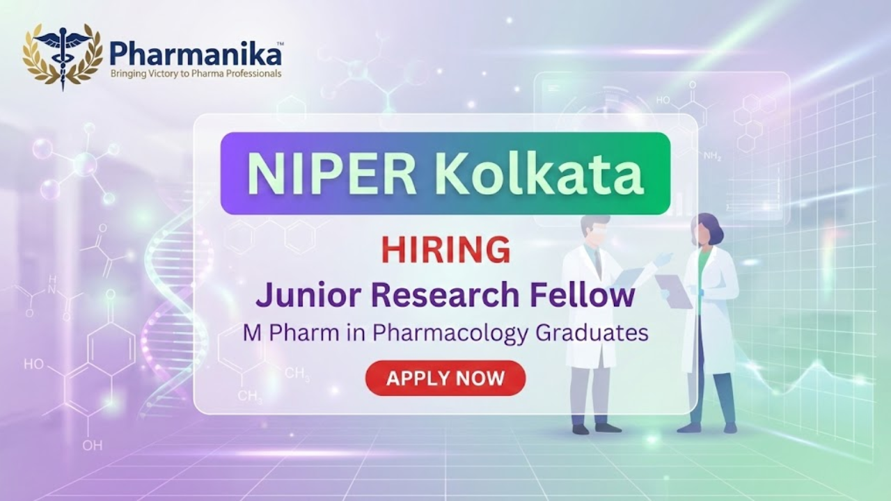 NIPER Kolkata invites applications for a Junior Research Fellow (JRF) position under its Centre of Excellence (CoE) in Flow Chemistry and Continuous Manufacturing. This Junior Research Fellow Job is a project-based position in the Department of Pharmacology and Toxicology offers a chance to work on cutting-edge pharmaceutical research with competitive emoluments and potential for extension based on performance. Graduates seeking M Pharma jobs or Pharmacy jobs can apply now.