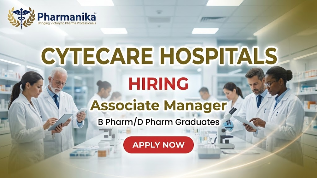 Cytecare Hospital, Bengaluru, is hiring an Associate Manager – Pharmacy to oversee hospital pharmacy operations, ensure safe medication dispensing, and manage controlled and non-controlled drugs. This Manager Job role is ideal for experienced hospital pharmacy professionals seeking leadership responsibility. Graduates seeking B Pharma jobs or D Pharm Jobs can apply now.