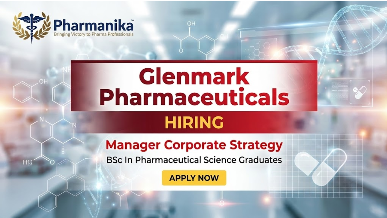 Glenmark Pharmaceuticals is hiring a Manager for Corporate Strategy at its Mumbai office. This Manager Job role involves strategic planning, market analysis, business development, and evaluating acquisitions/divestments to drive the company’s growth in global pharmaceutical markets. Graduates seeking Pharmaceutical Science Jobs or Pharmacy Jobs can apply now.