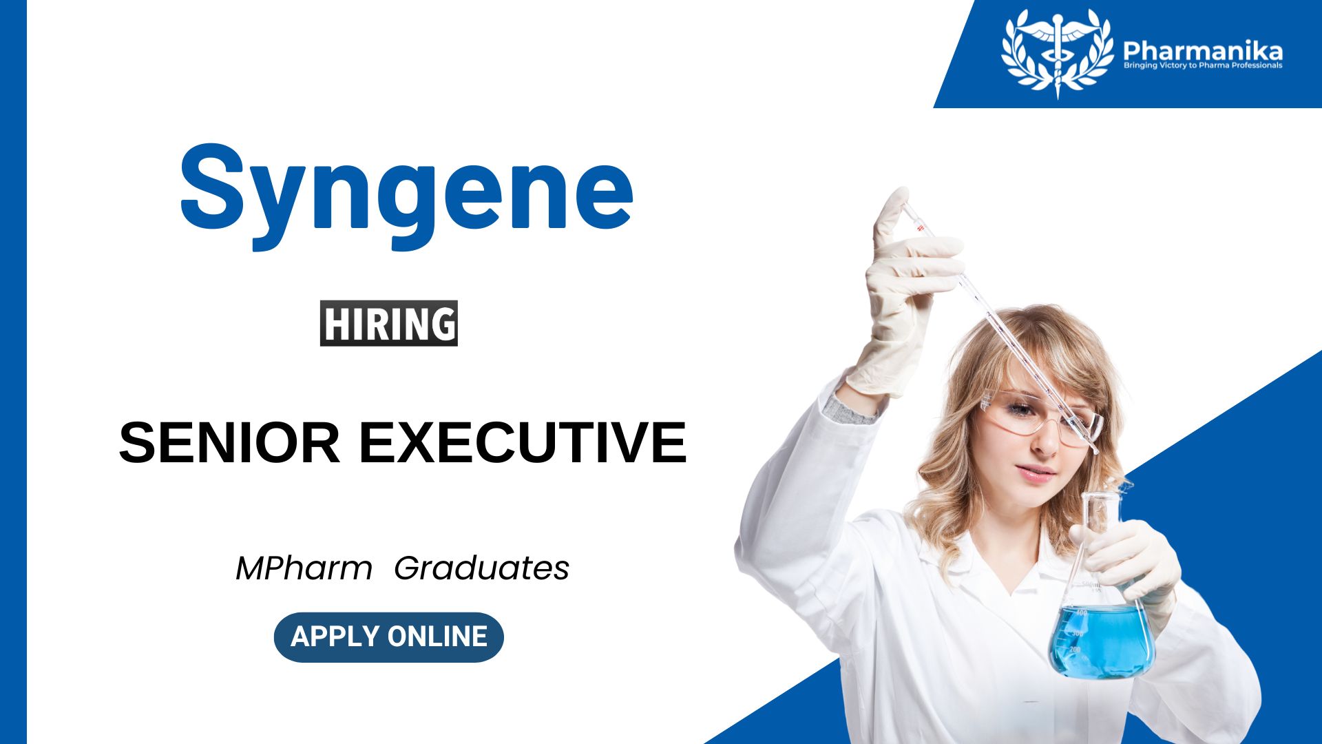 MPharm Job at Syngene | Apply Now for the Senior Executive Role