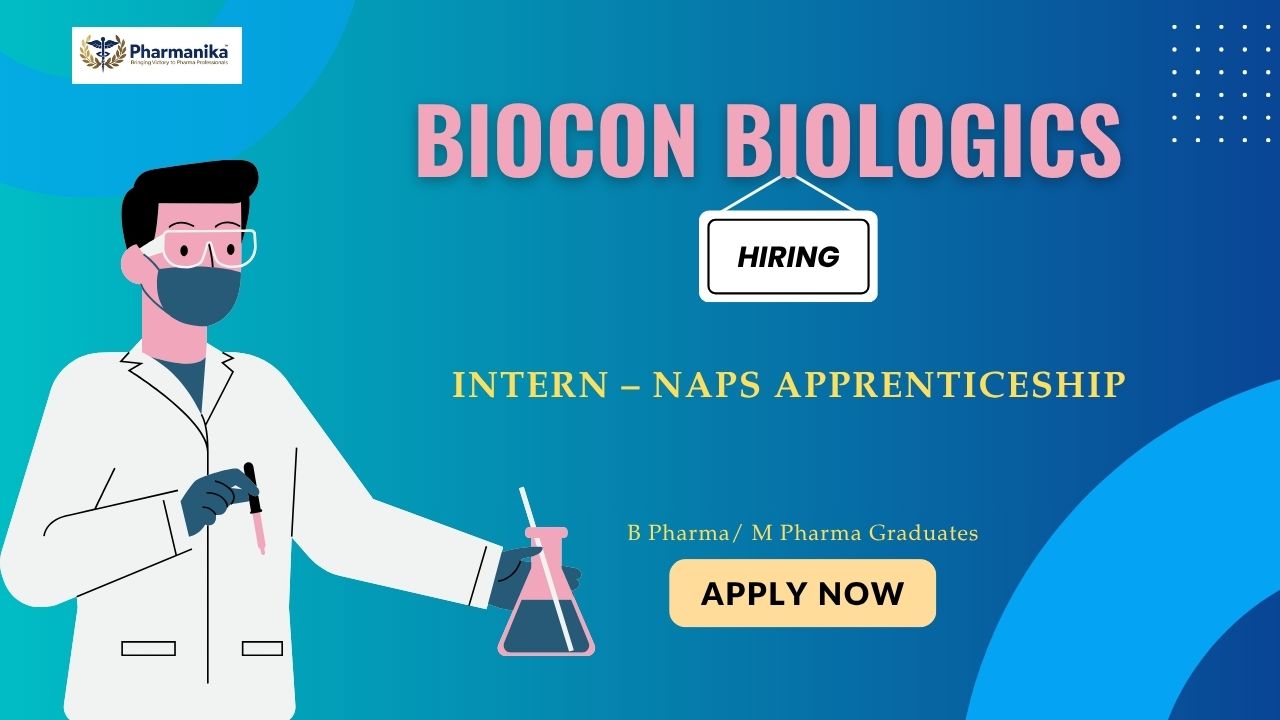 Are you looking for an exciting Pharma Career to begin your professional journey? Biocon Biologics, a global leader in biopharmaceutical innovation, invites B. Pharm and M. Pharm students to join as Interns under the NAPS Apprenticeship Program in Bengaluru, Karnataka. This full-time, on-site pharma internship provides a unique opportunity to gain real-world experience in Aseptic Manufacturing, work with industry experts, and understand advanced biopharma processes. This Biocon career program is ideal for pharmacy graduates aspiring to build a career in biotechnology and pharmaceutical manufacturing.