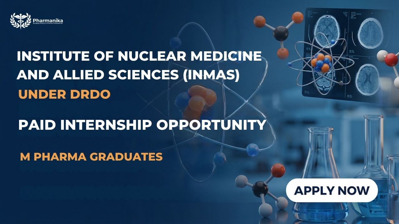 The INMAS Paid Internship 2026 offers an exceptional Pharma Internship opportunity for final-year UG and PG students in pharma, biotechnology, biomedical sciences, and chemical sciences. This six-month program at the Institute of Nuclear Medicine and Allied Sciences (INMAS), DRDO, Delhi, provides hands-on research experience, including pharmaceutics, pharmacology, computational neuroscience, and life sciences, equipping students for advanced careers in pharma and applied research.