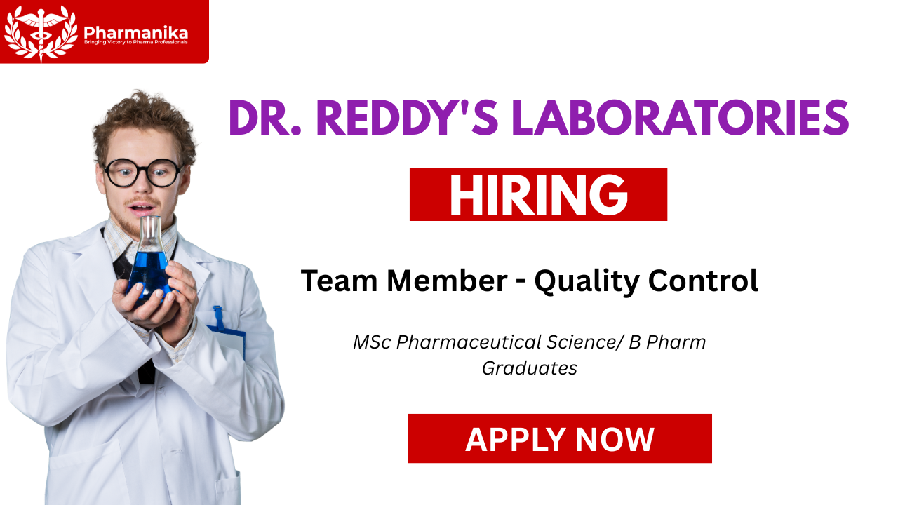 Dr. Reddy’s Laboratories, a global pharmaceutical leader, is inviting applications for the position of Team Member – Quality Control at its Hyderabad facility. This QC Job role offers an opportunity to work in a regulatory-compliant environment, ensuring product quality, data integrity, and patient safety through effective investigation and quality assurance systems. Graduates seeking for b pharmacy jobs can apply and graduates who want to build their career with dr reddys careers can apply.