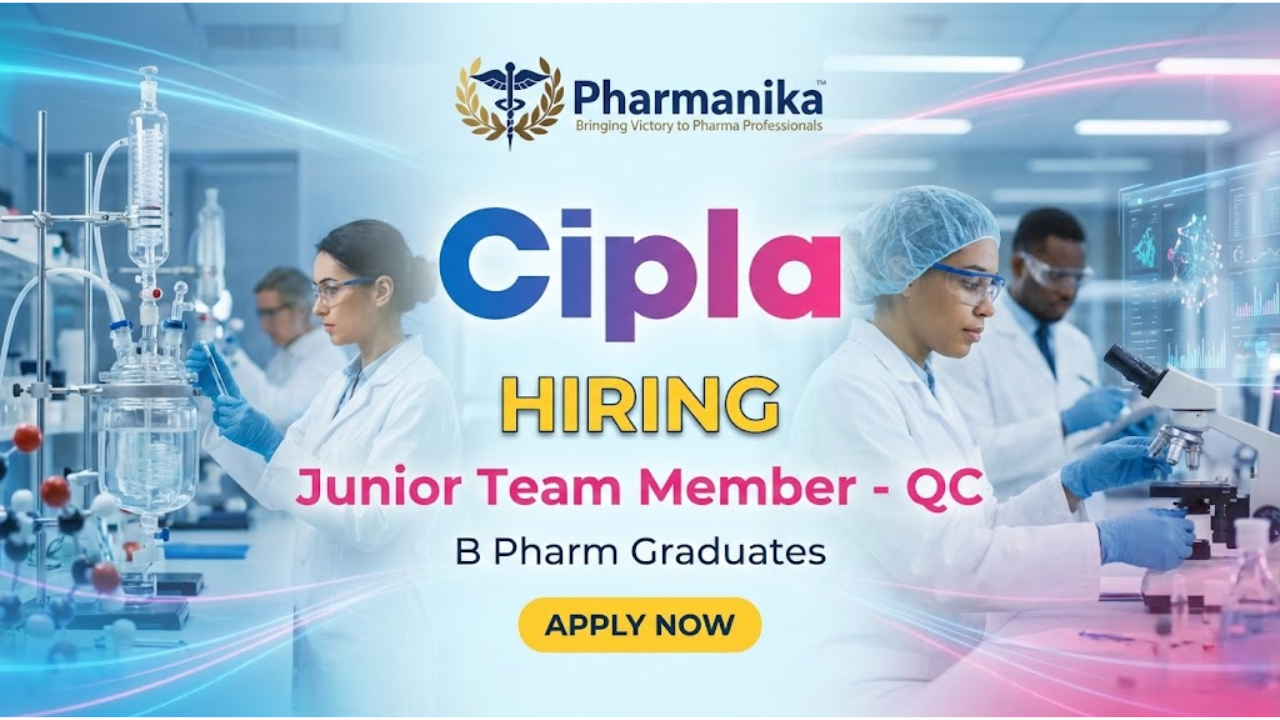 Cipla is hiring a Junior Team Member – QC at its Rangpo, Sikkim location. This Quality Control Job role is an excellent opportunity for B. Pharm graduates to gain hands-on experience in quality documentation, pharmacopoeia compliance, and cGMP standards within a regulated pharmaceutical manufacturing environment. Graduates seeking B Pharma jobs or Pharma Jobs can apply now.