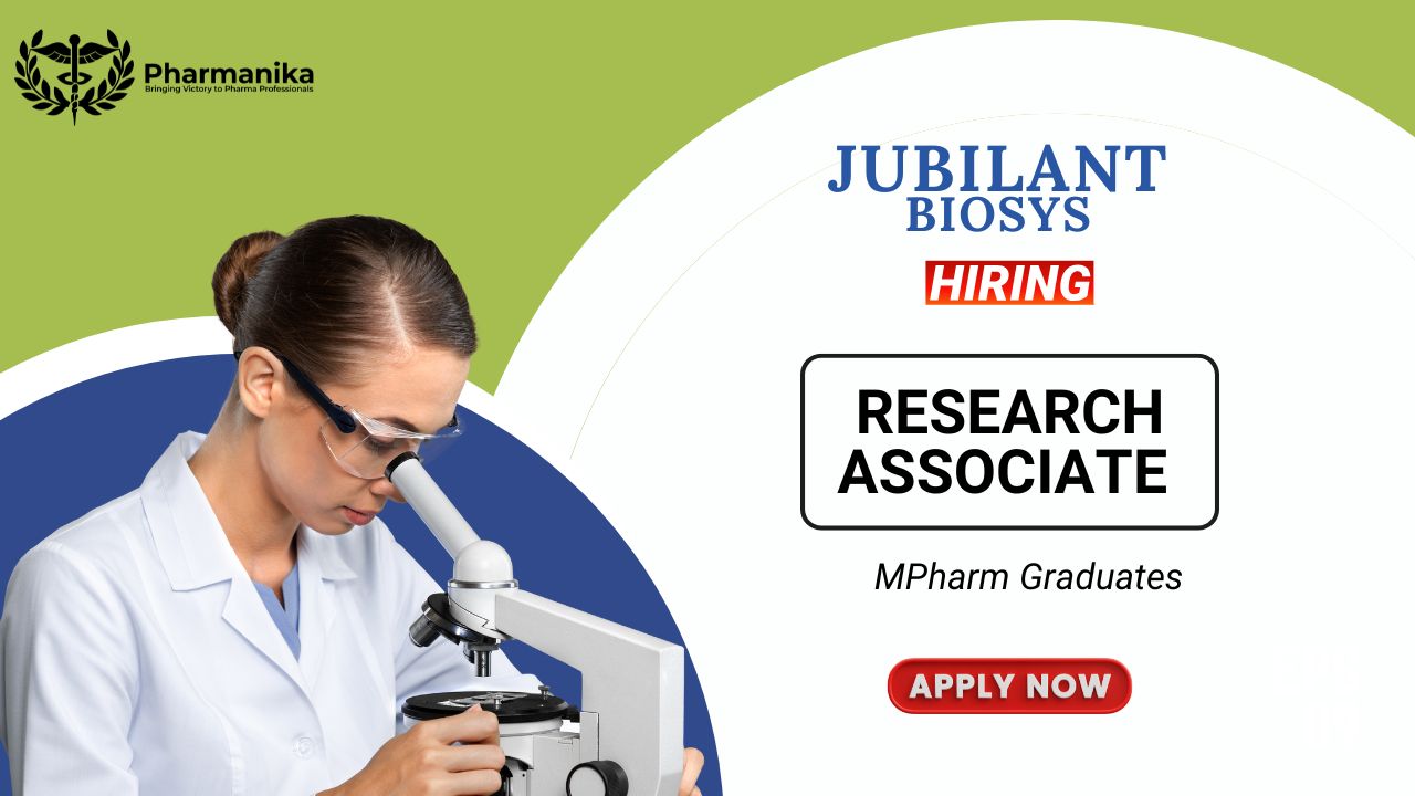 Research Associate Job at Jubilant Biosys | Pharmacy Graduates Apply Now