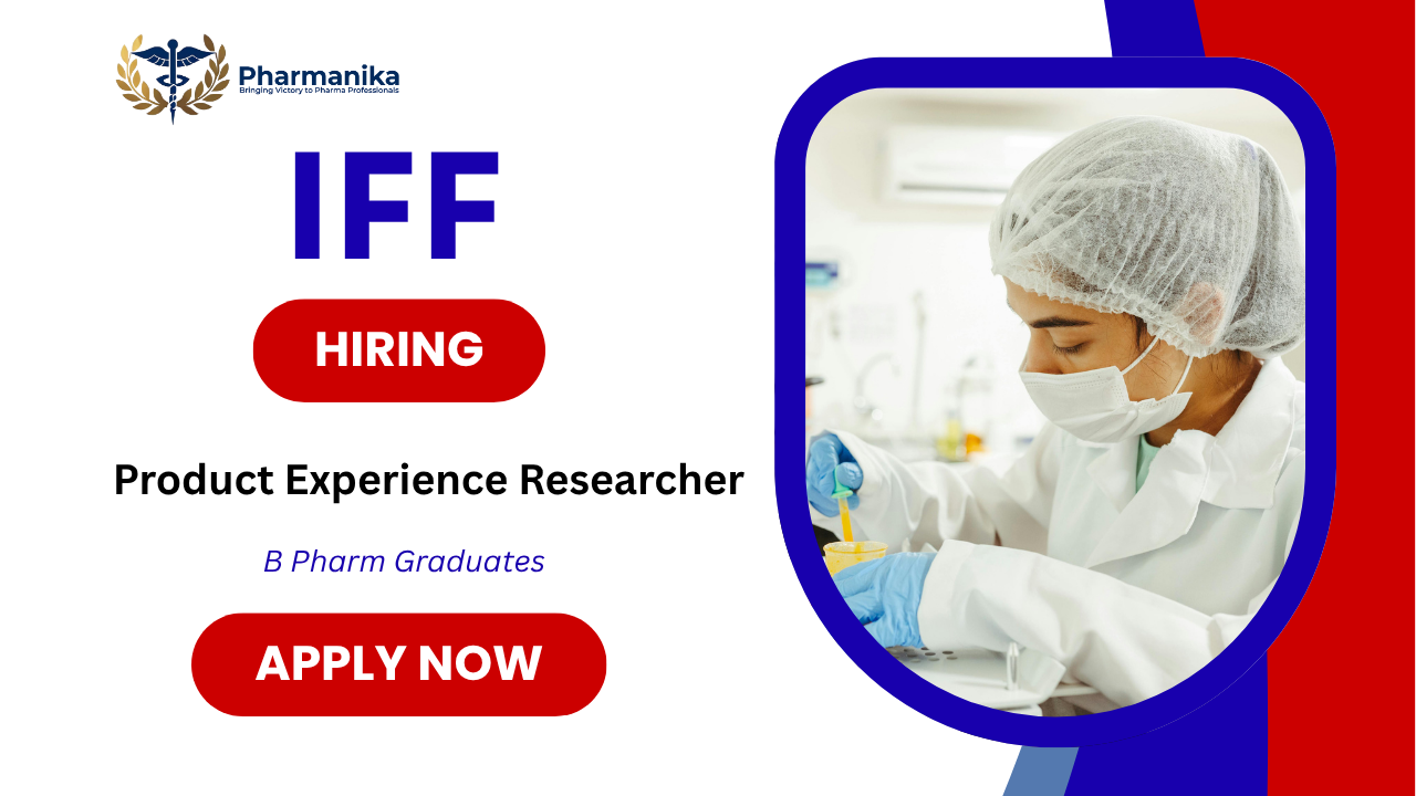 IFF is hiring a Product Experience Researcher for its Bengaluru location. This Research job on-site role focuses on sensory research, consumer insights, quantitative and qualitative studies, and data-driven flavor design. Candidates with 3+ years of sensory and consumer research experience can apply. Graduates interested in Pharmacy Job or b pharma jobs can apply.