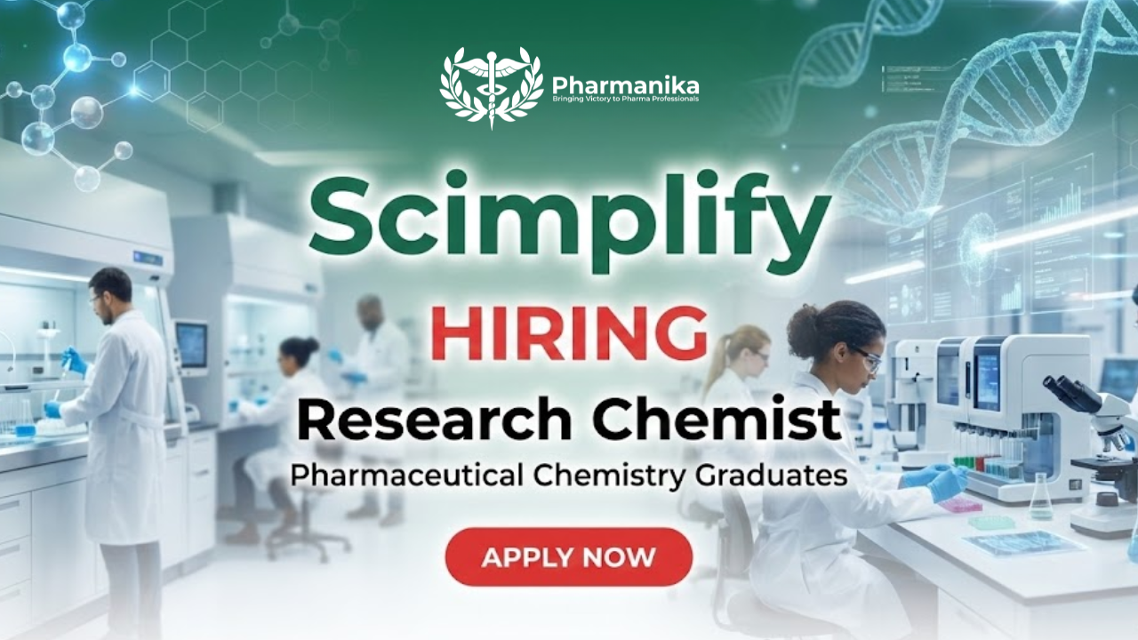 Scimplify is hiring a Research Chemist – Analytical R&D in Anekal, Bengaluru. The Research Job role involves analytical method development, validation, and routine testing for pharmaceutical and agrochemical projects. Candidates will work with advanced analytical instruments, support stability and impurity studies, and ensure regulatory compliance. Graduates seeking Pharmacy Jobs and want to start their career with Pharmacy Careers can apply now.