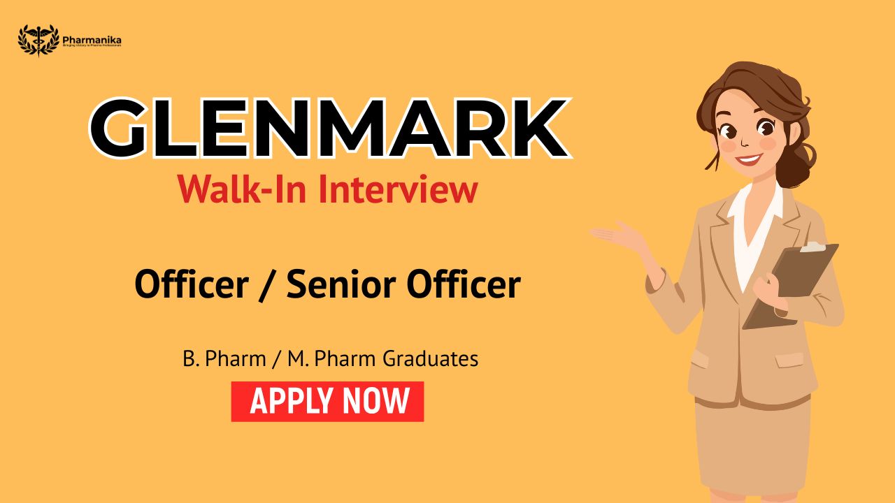 Glenmark Pharmaceuticals Limited is a globally recognized pharmaceutical company with a strong presence in branded, generic, and specialty medicines. As part of its Walk-In Drive at Glenmark Pharmaceuticals careers, the company follows a formal recruitment process through its own HR department. It does not charge any registration fees or security deposits.