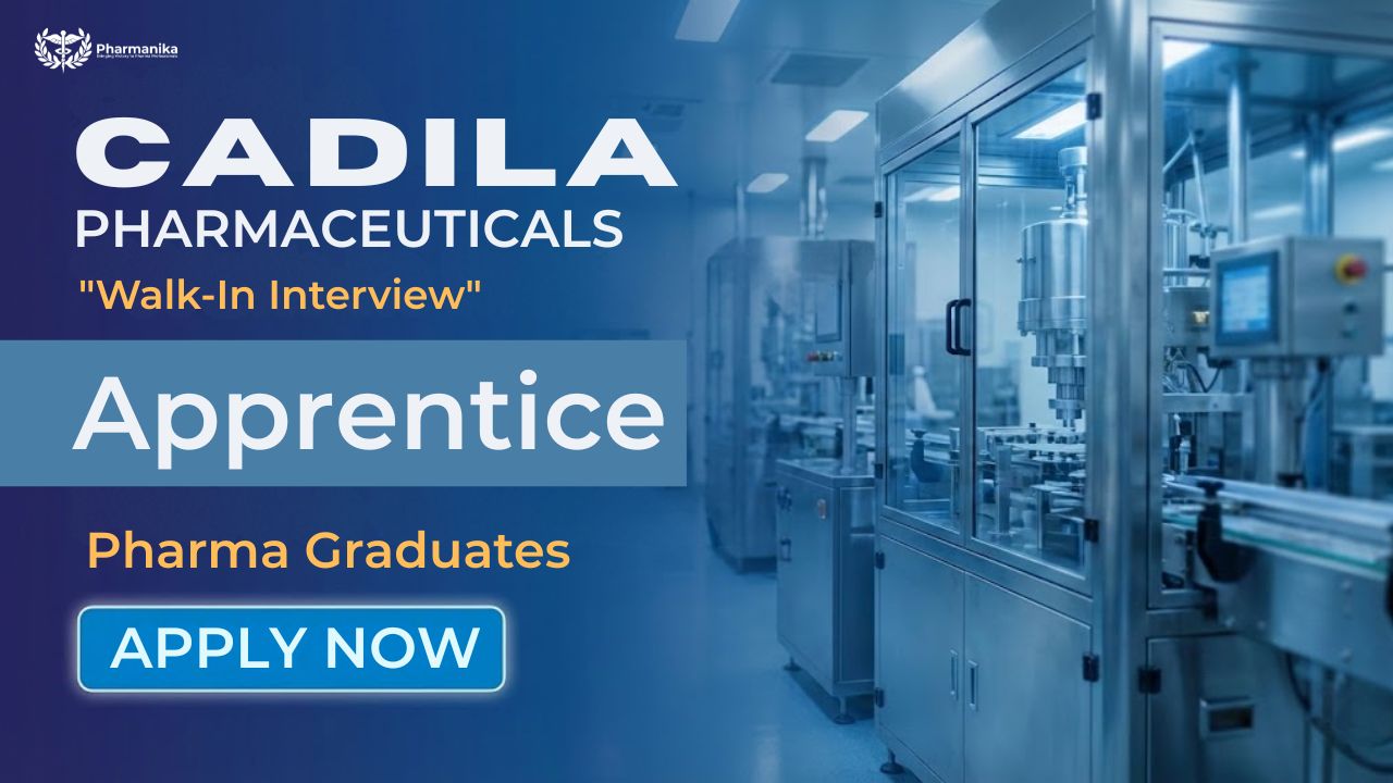 Cadila Pharmaceuticals Limited is conducting a Walk-In Interview in Ahmedabad for freshers, offering excellent Apprentice Jobs in Manufacturing and Packing at its Dholka Plant. This walk-in opportunity is ideal for candidates looking to start their pharma career through a Walk-In Interview with Apprentice Jobs.