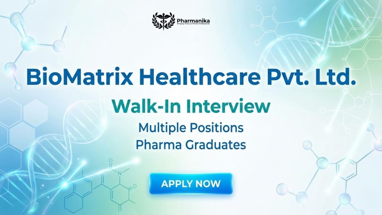 If you are searching for the best Walk-in Interview opportunity in the pharmaceutical industry, this is your chance to explore rewarding Pharma Jobs with BioMatrix Healthcare. Attend the Walk-in Interview at Vadodara on 04/01/2026 for a promising QC Production OSD Formulation role and work with a globally recognized healthcare organization committed to innovation and quality.