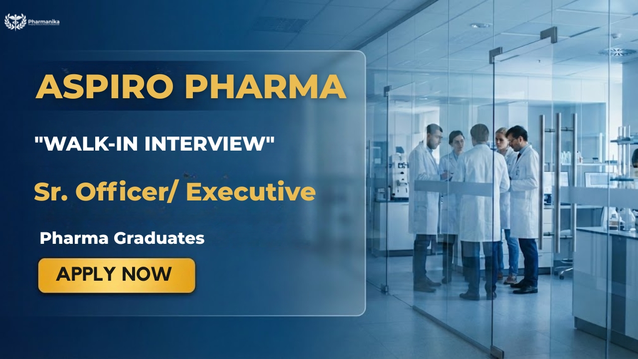 Aspiro Pharma Specialities Pvt Ltd requires qualified personnel for its Injectable facility. This Walk-In Interview for Pharma Jobs Hyderabad includes opportunities in production operations, injectable supervision, and microbiology testing functions as per quality and regulatory standards.